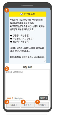 2. 02 부달 텍스트 입력 : 부달 SMS 텍스트는 90byte까지 입력가능합니다.